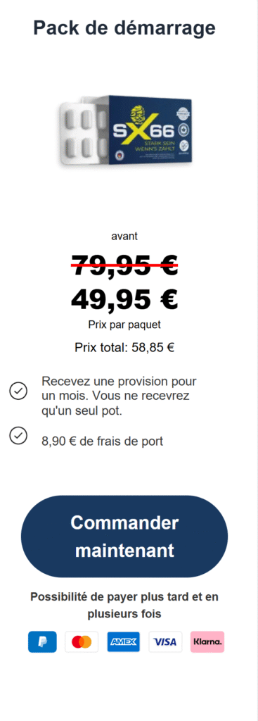 Après analyse, SX66 apparaît comme une option sérieuse pour les hommes souhaitant soutenir leur vitalité, leur énergie et leur bien-être au quotidien.